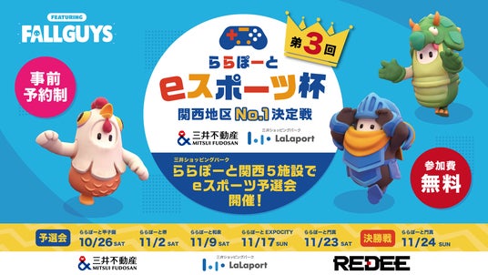 「第3回 ららぽーとeスポーツ杯 関西地区No.1決定戦」は、三井不動産商業マネジメント株式会社が、三井ショッピングパーク ららぽーと関西5施設にて開催するeスポーツイベント。