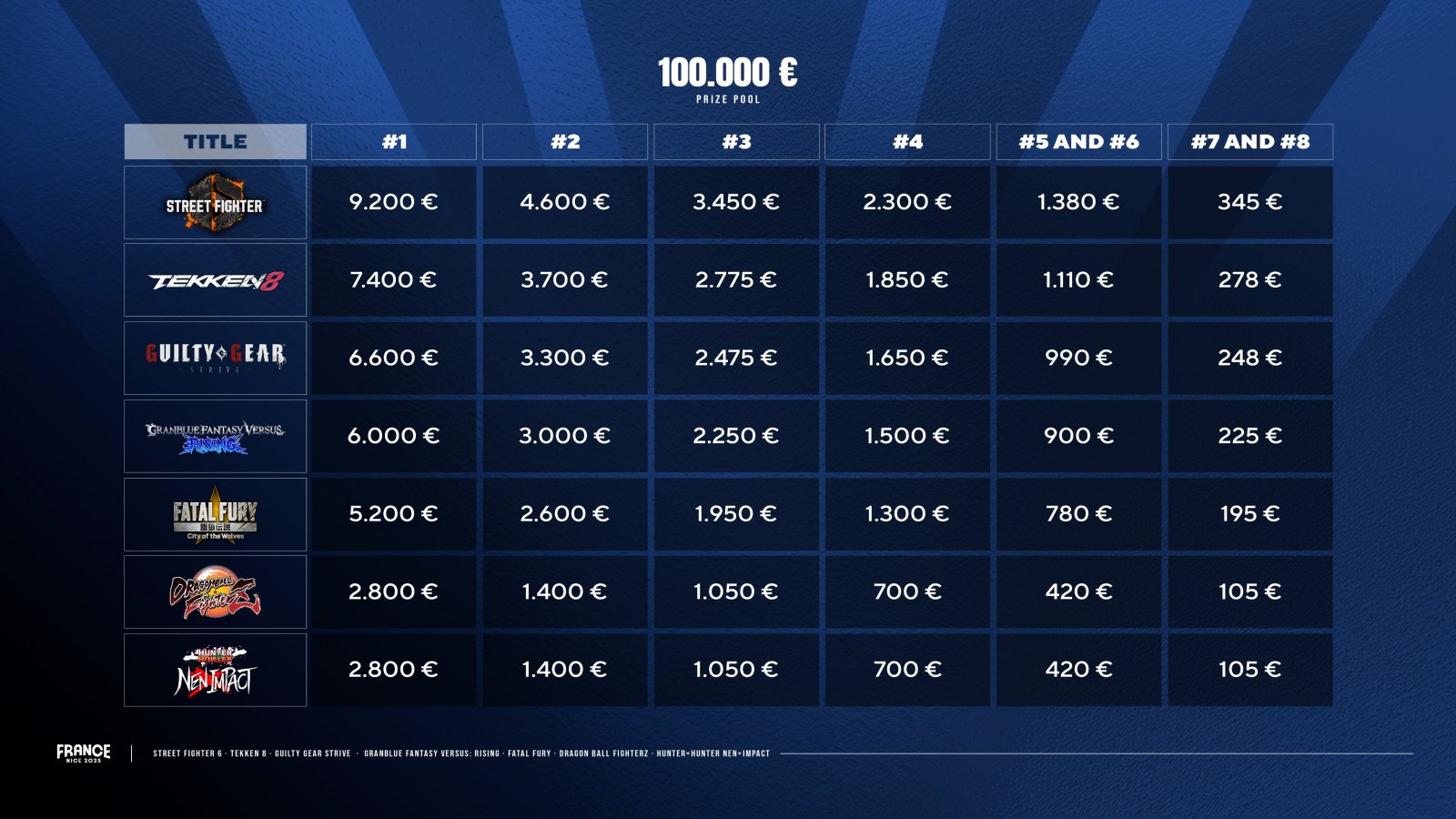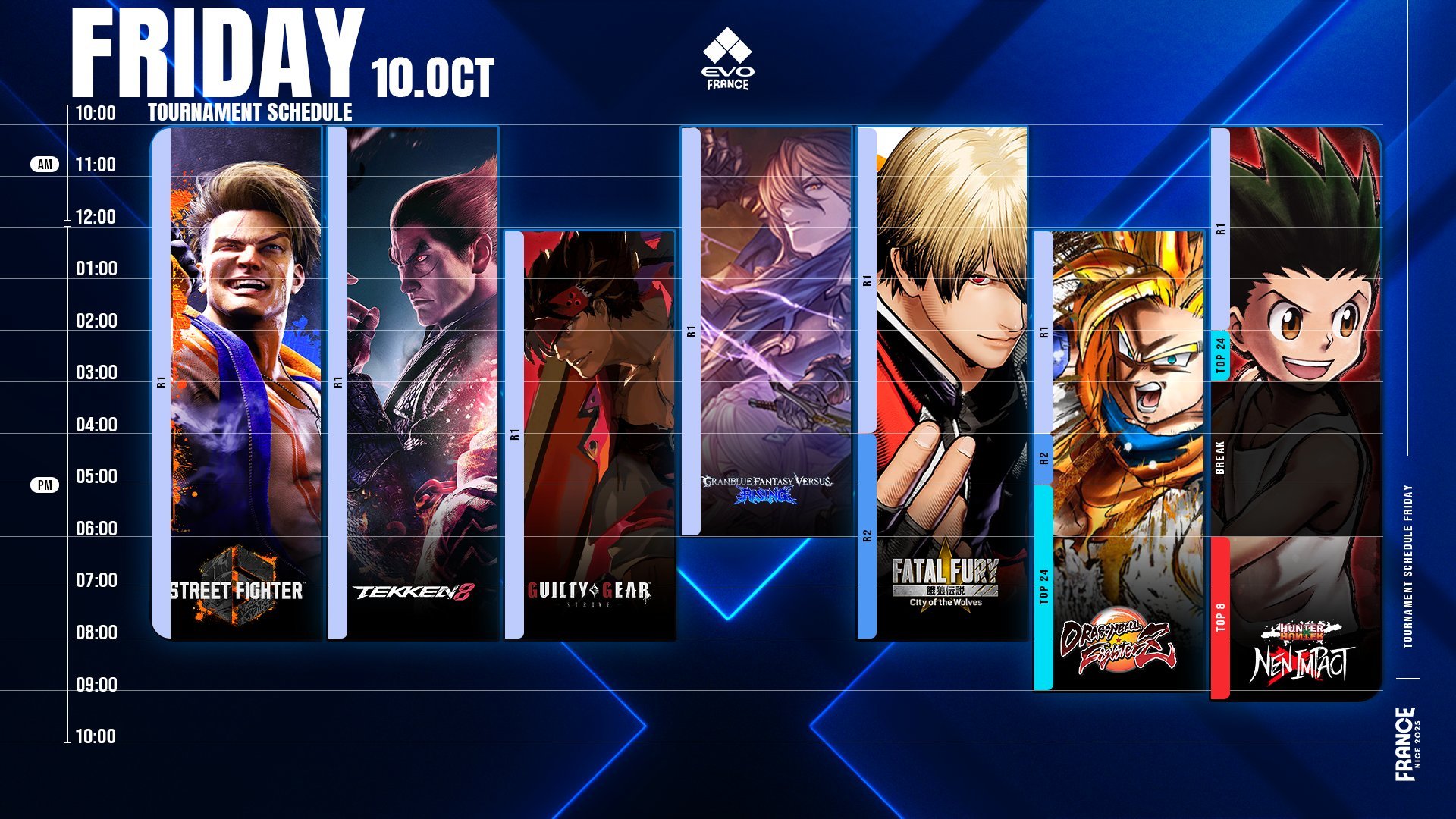 start.gg を参照(https://www.start.gg/tournament/evo-france-2025/details)