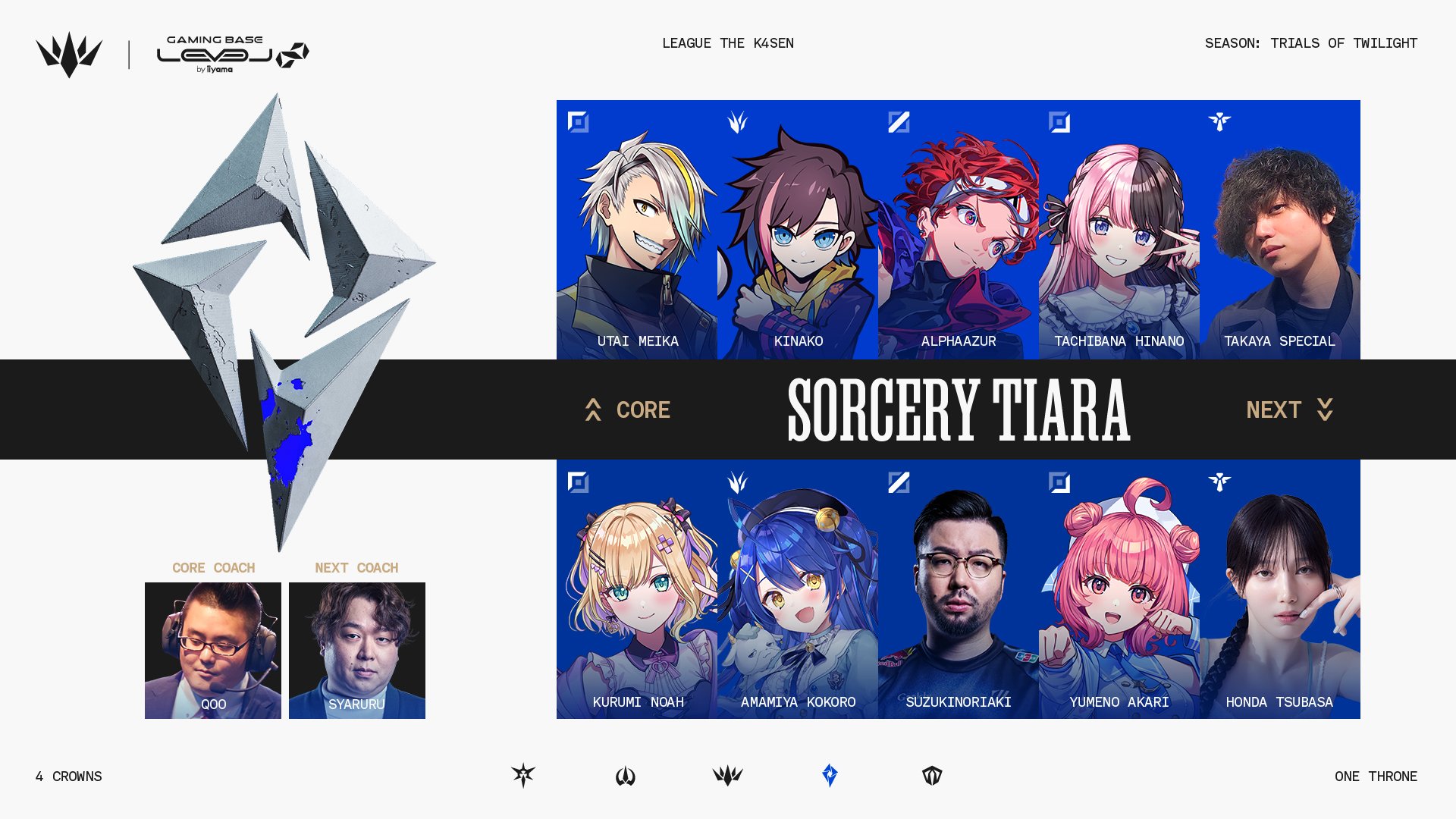 4チーム・2階級(CORE・NEXT)によるリーグ戦で、各チームは歴戦のストリーマーの“CORE”5名と、次世代を担うストリーマーの“NEXT”5名、コーチ2名の計12名で構成される。