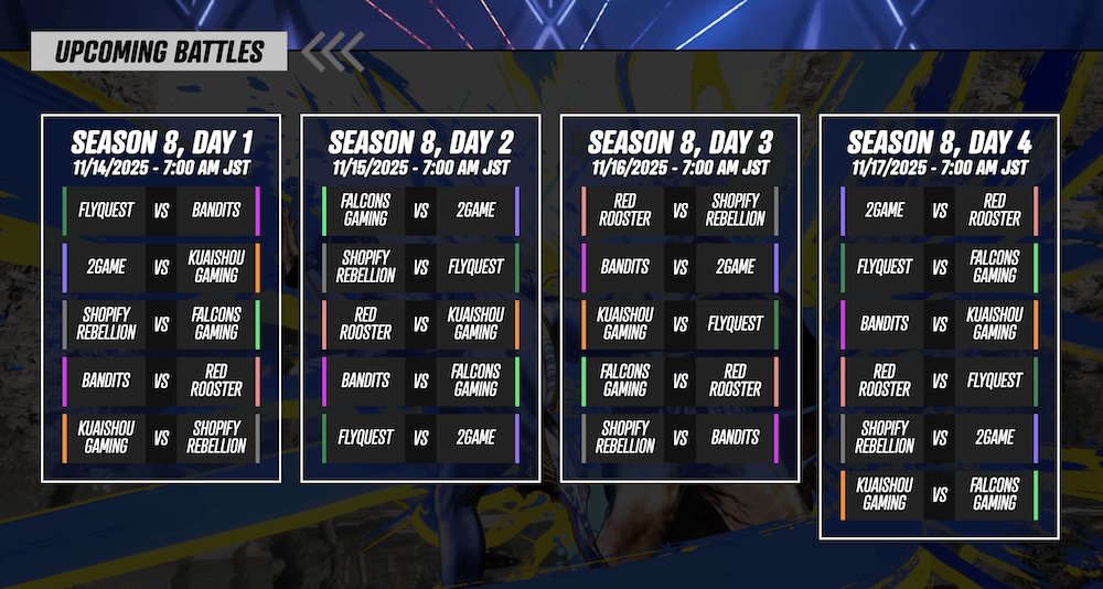 アメリカ地域の「ストリートファイターリーグ: Pro-US」(SFL-US)はシーズン8。日本時間11月14日(金)より全節Live配信される。