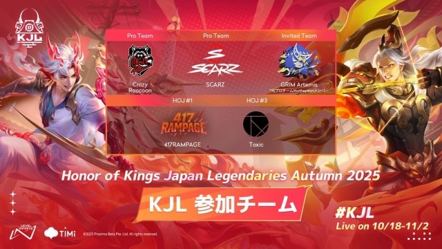 「Honor of Kings Japan Legendaries」(KJL)は、『Honor of Kings』(HoK)の日本最高峰の大会。プロチームをはじめ、公式コミュニティ大会「Honor of Japan」(HOJ)の上位チームにも出場権が与えられる。