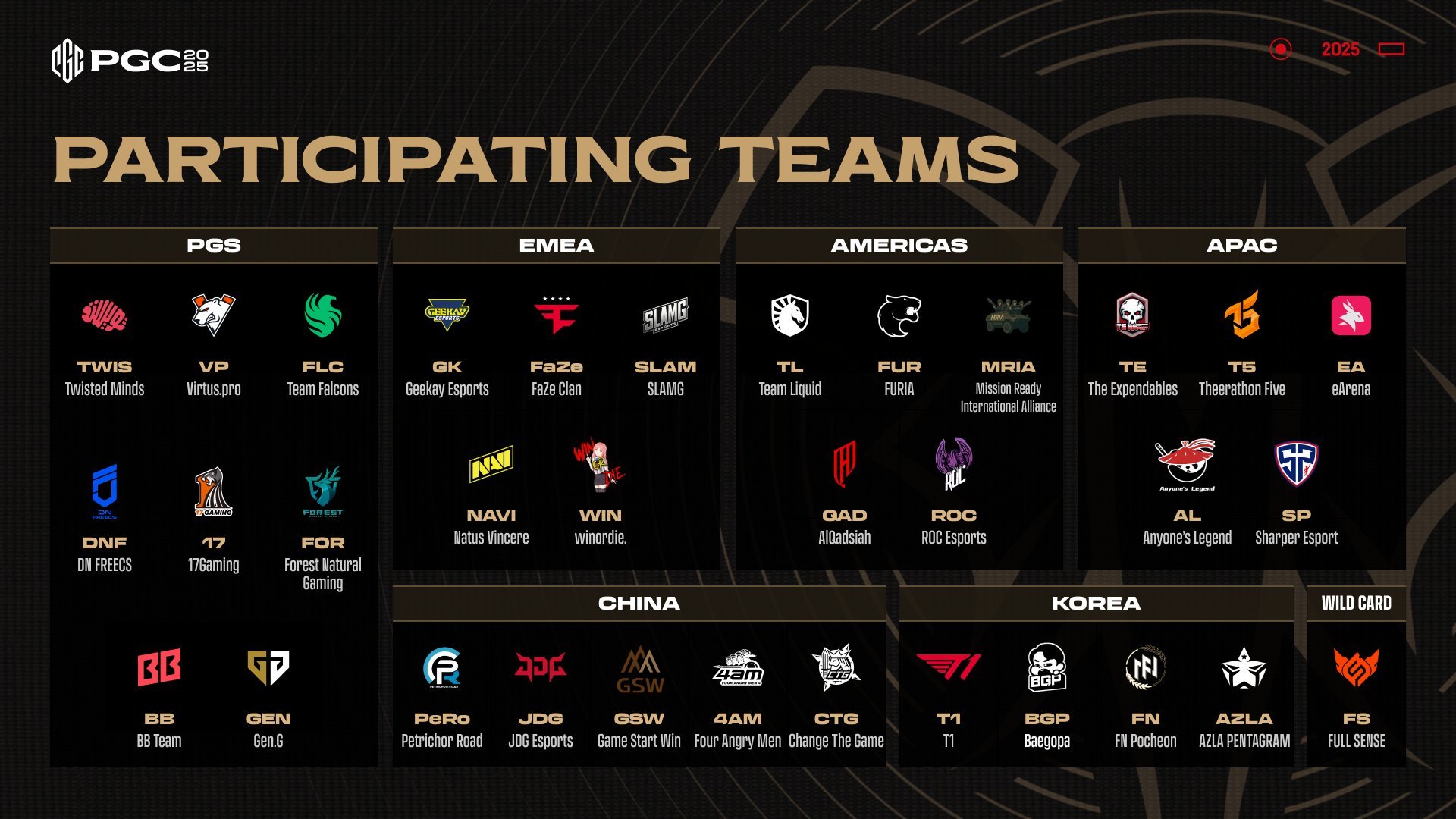 「PUBG Global Championship 2025(PGC 2025)」は、1年を締めくくる世界大会。PGSおよび地域リーグの成績に基づき、出場33チームがGroup AとGroup Bに分かれてグループステージを戦い、上位チームがラストステージとグランドファイナルに進出する。