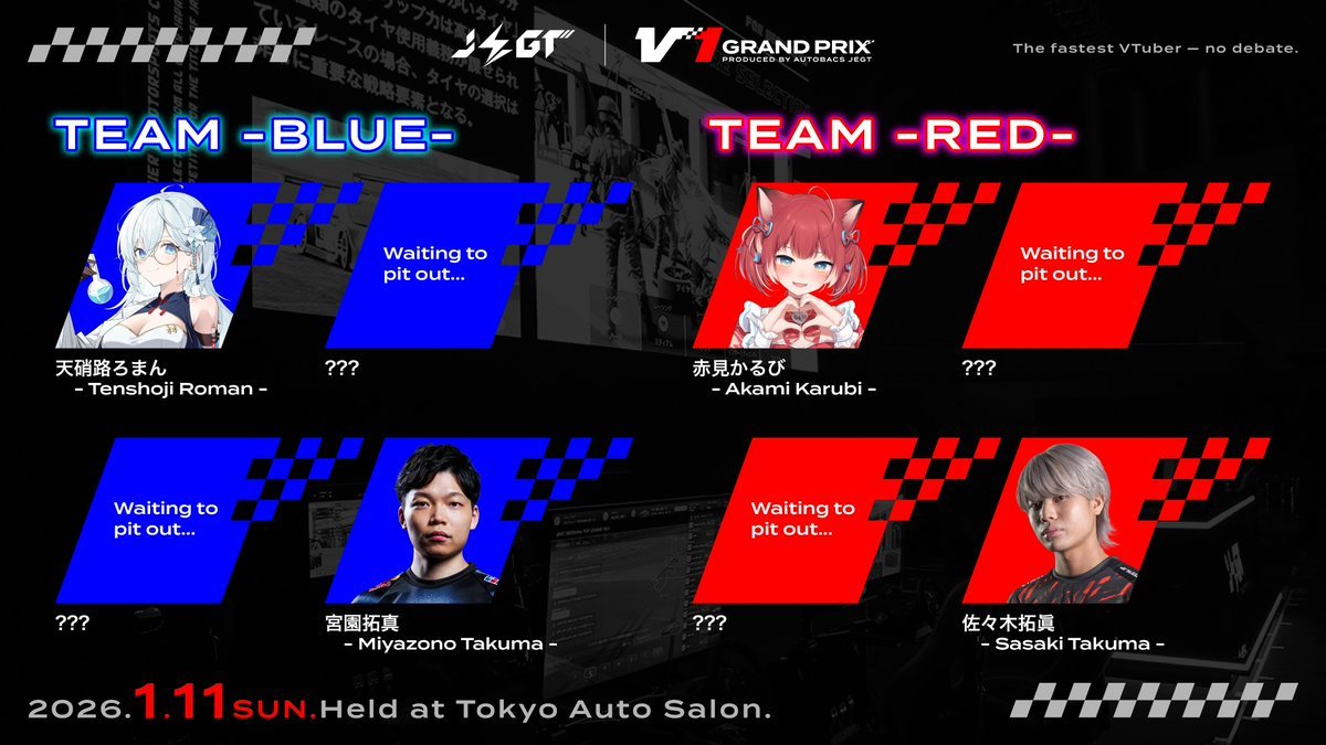 「東京オートサロン2026」を舞台にオフラインで開催されるeモータースポーツ大会「JEGT(Japan Electronic sports Grand Touring)」。そのスペシャルコンテンツとして、VTuberが出場するスペシャルレース「V1 GRAND PRIX」が実施される。