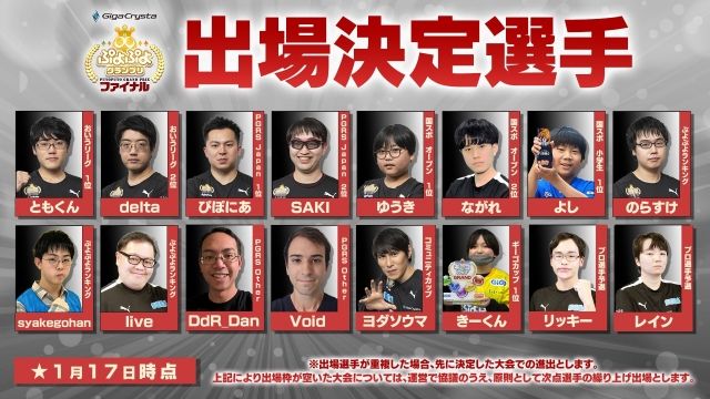 3.セガ公式大会「GigaCrysta ぷよぷよグランプリ ファイナル」(2026年2月8日開催予定)」の成績上位者4名であること