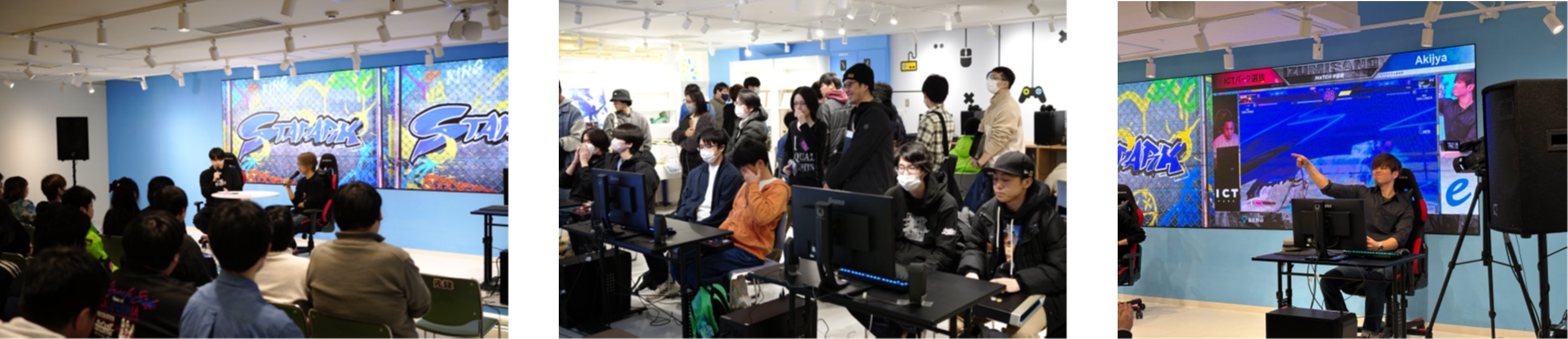 2025年3月開催(左)ゲスト交流の様子、(中央)オフライン企画、(右)北海道旭川市とのオンライン対戦の様子