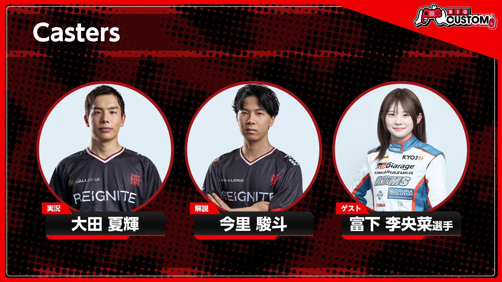 「RIG CUSTOM グランツーリスモ7」は、プロeスポーツチームREIGNITEが主催する『グランツーリスモ7』の参加型カスタムマッチ。REIGNITE所属の神藤巧磨や角田心楽、EBBRO RACING TEAM所属の加藤陸が招待選手として出場する。
