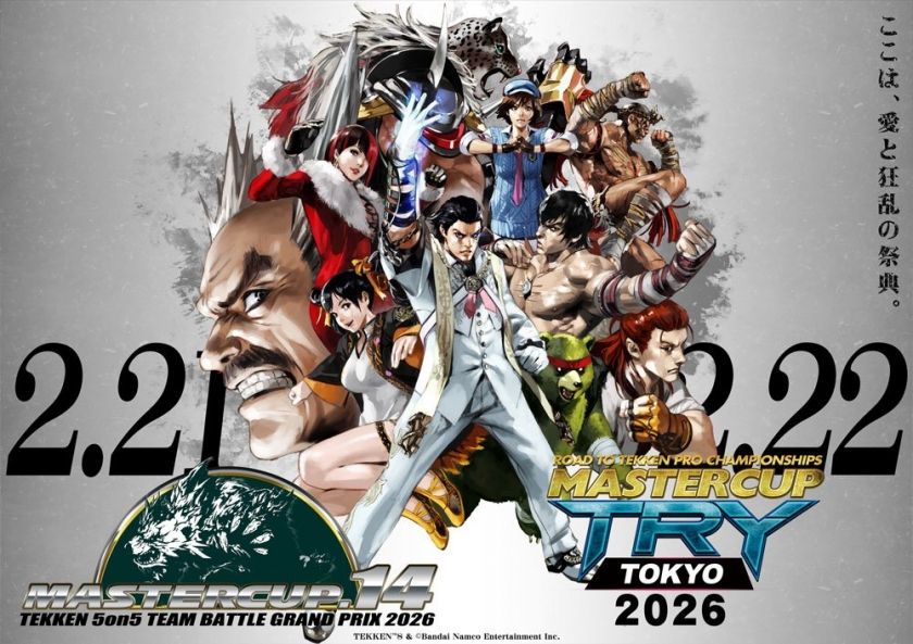 富山県で生まれた『鉄拳8』の大規模オフライン大会「MASTERCUP」。14回目となる今回は、ベルサール新宿セントラルパークを舞台に2日間開催。2月21日(土)に5on5チーム戦「MASTERCUP.14」、2月22日(日)にJeSU公認プロライセンス発行大会「MASTERCUP TRY TOKYO 2026」を実施する。