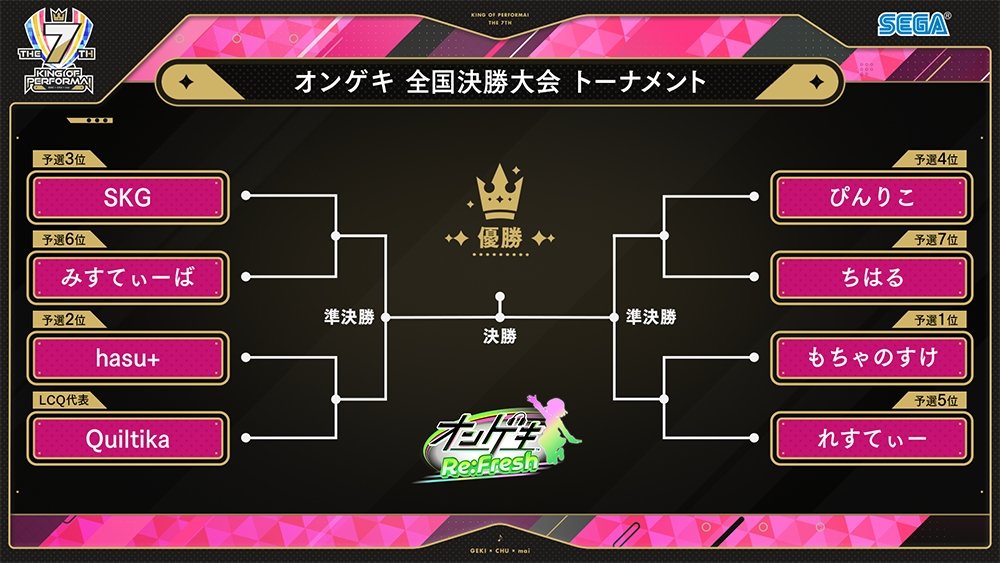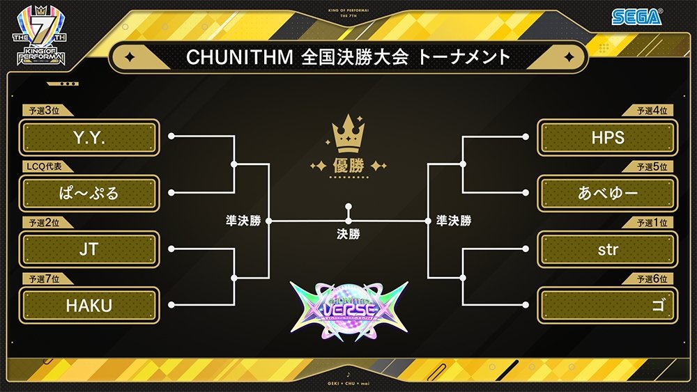 セガの音ゲー公式全国大会「KING of Performai The 7th」の決勝大会。『maimai でらっくす』『オンゲキ』『CHUNITHM』各タイトルの全国決勝およびInternational ver.決勝を実施する。