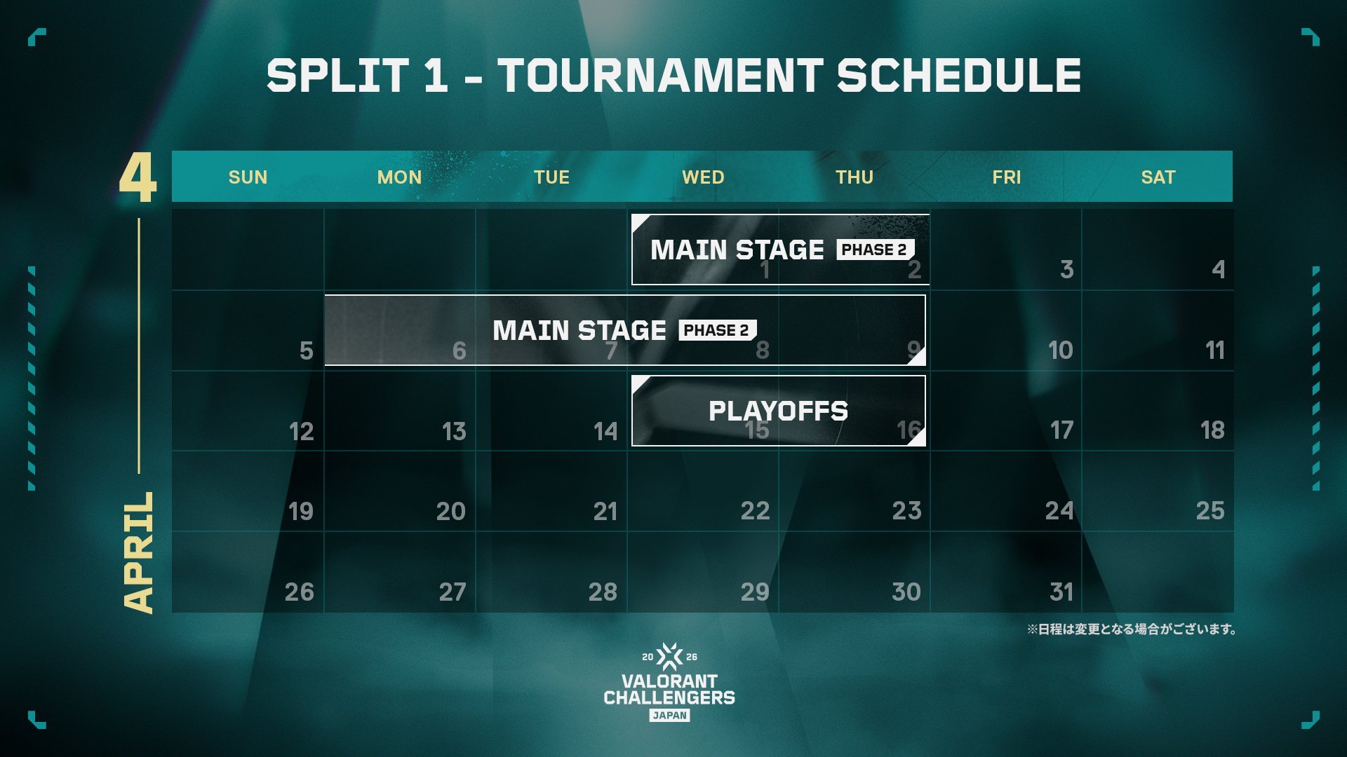 VALORANT Challengers Japan 2026 Split 1 Main Stage・Playoffs【2026年3月19日〜4月16日】