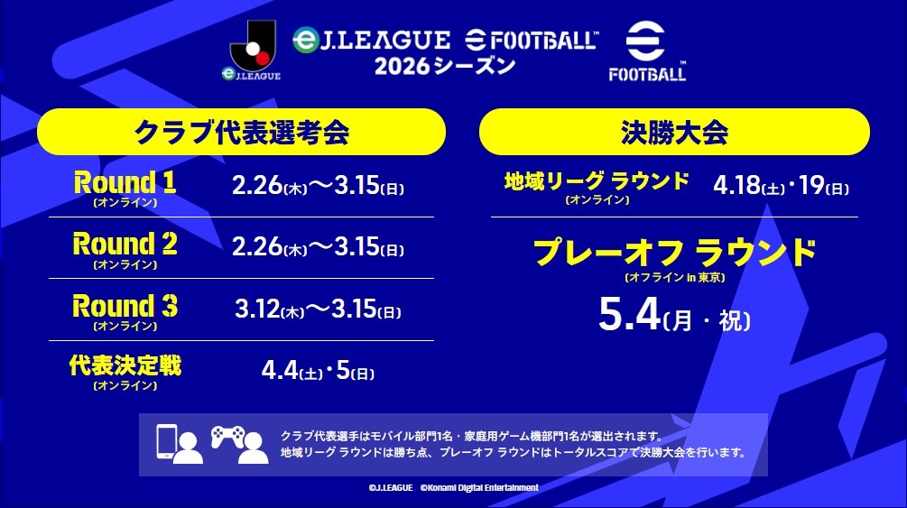 大会公式サイト:https://e-football.konami.net/ejleague/2026/